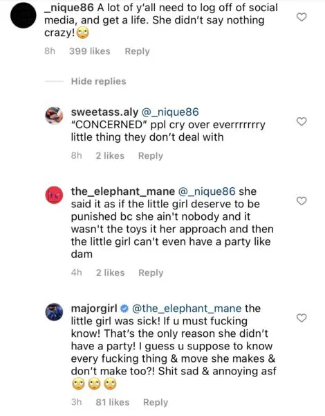 She later clapped back at someone who was questioning Zonnique’s parenting and why she didn’t throw a birthday party for her daughter. See reaction below: