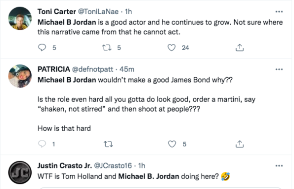 After the question went viral, Michael B Jordan became a trending topic on Twitter as numerous people expressed that they don’t think the ‘Creed’ actor is ready to play James Bond.