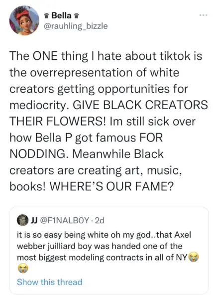 The earnings from these influencers come from a combination of TV appearances, branding, modeling, sponsorships, performances, business ventures, etc., that these Tiktoker’s received as a result of their exposure on the app. However, many talented Black TikTokers do not have the amount of influence as their non-Black counterparts while being just as entertaining.
