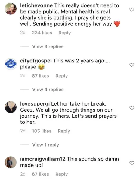 The source claims that her manager and a few friends who witnessed the event were horrified, as they had initially come to her apartment to check on her mental and physical health. (Read more about it on The Jasmine Brand.)