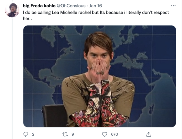 “I do be calling Lea Michelle rachel but Its because i literally don’t respect her..”