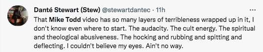 Pastor Mike Todd before running spit on the herb who volunteered pic.twitter.com/e2Cb0xoYKV