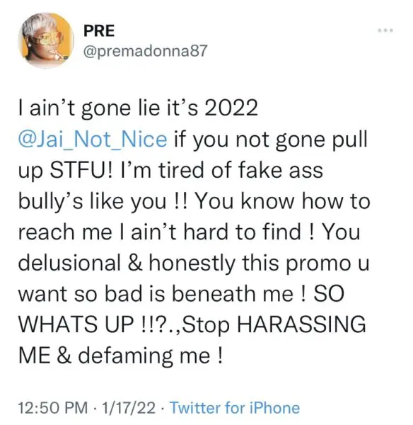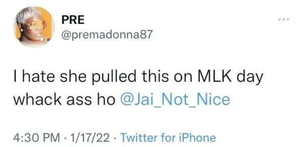 Recently, Premadonna, real name Nakeitha Thomas, 37, and Jai Nice, 31, have been going back and forth on social media after Premadonna appears to have shaded Jai Nice’s seafood rice.