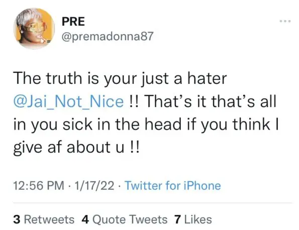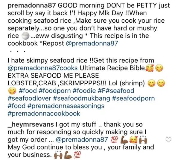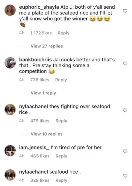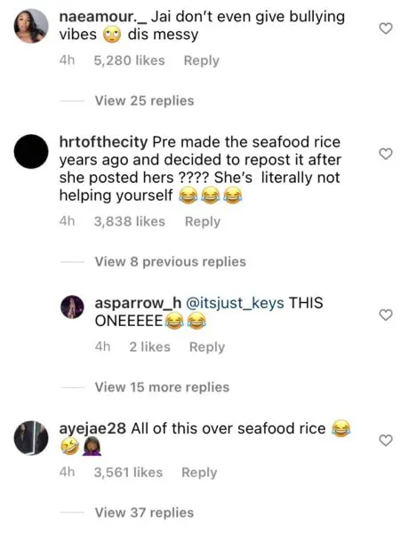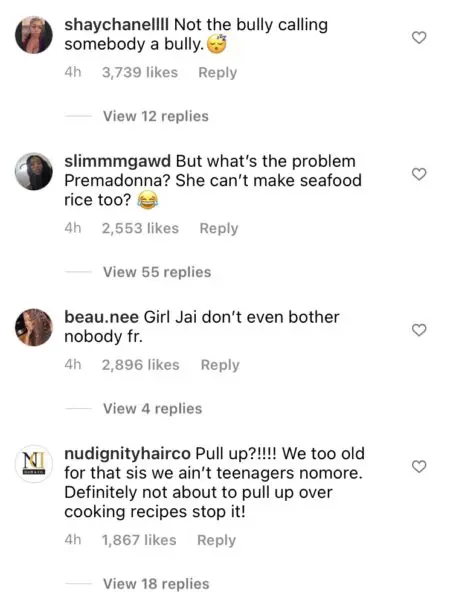 Some fans seem to be on Jai Nice’s side, believing that Premadonna was being hostile towards Jai’s seafood rice recipe first, therefore starting the verbal altercation in the first place. Others believe that the back and forth is uncalled for on both ladies’ parts and that seafood rice recipes shouldn’t cause this much conversation.