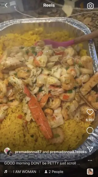 Premadonna uploads a video or her cooking seafood rice and put a shady caption.