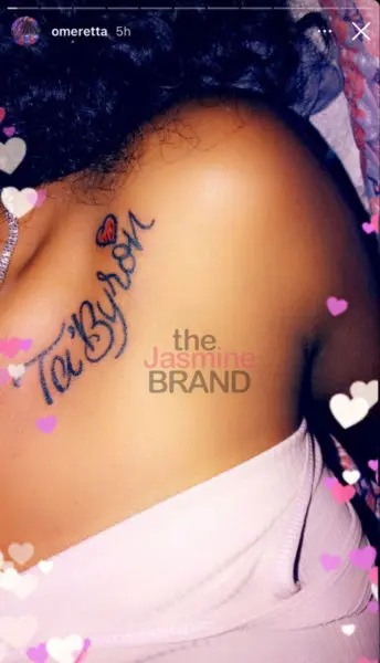 Omeretta The Great (real name Amaria Williams) is trending after showing just how much she loves her man! The 25-year-old rapper recently showed her fans a photo of the six tattoos of her incarcerated boyfriend, Ta’Byron Smith.