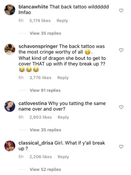 Fans of Omeretta were already against the rapper’s decision to wait 20+ years for her boyfriend’s release. The latest news of Omeretta’s multi-tattoo tribute to the prisoner has gotten the same response, with many fans wondering why she needed to get his name tattooed on her body so many times.