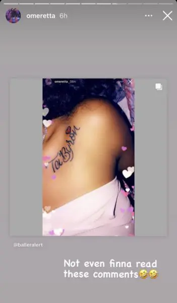 Rapper Omeretta has her man’s name tatted on her 6 times!! pic.twitter.com/ND7gBv7GUI