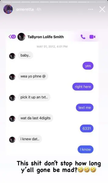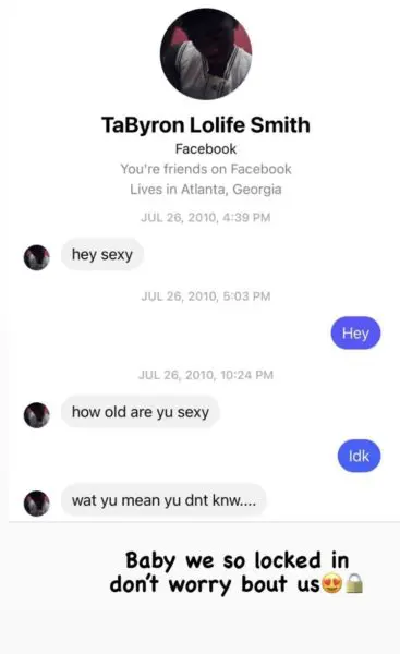She then sends screenshots of her first conversation with her long-time boyfriend, showing that the two have been associated with each other since 2010, making their bond too close for her to leave him during his incarceration.