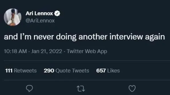 Ari Lennox might be washing her hands with interviews.