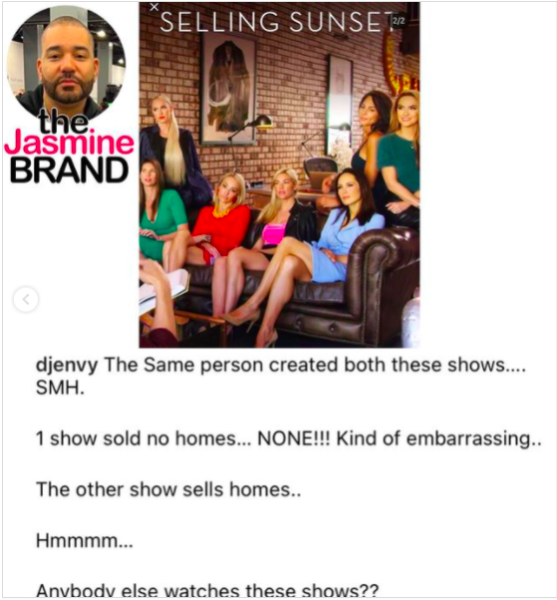 As previously reported, Rosado and her co-stars unexpectedly found themselves at the center of a debate surrounding the content of ‘Selling Tampa’ after DJ Envy called the series “embarrassing” for overdoing the drama. In an Instagram post, the ‘The Breakfast Club’ co-host compared ‘Selling Tampa’ to Netflix’s original real estate reality series ‘Selling Sunset.’ Both shows were created by Adam DiVello. DJ Envy captioned his post,