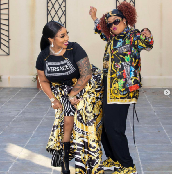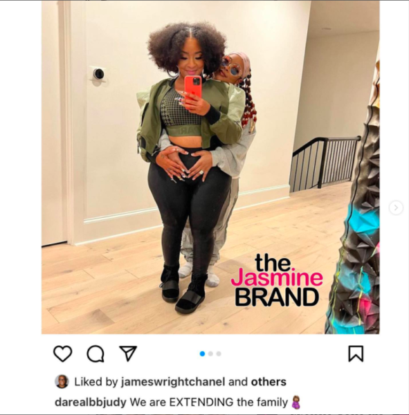 In the image, that was shared to both of their IG accounts, Da Brat is standing behind Judy Dupart as she holds her stomach.