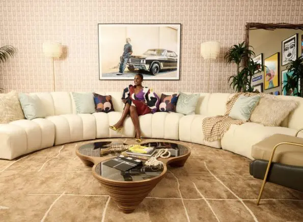 The mid-century LA pad, located in View Park, is also decked out with artwork by local black artists such as Maya Iman, Vakseen and Domonique Brown, whom Issa Rae intentionally chose in order to highlight black artists.