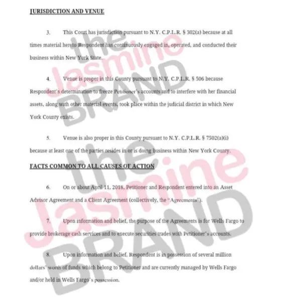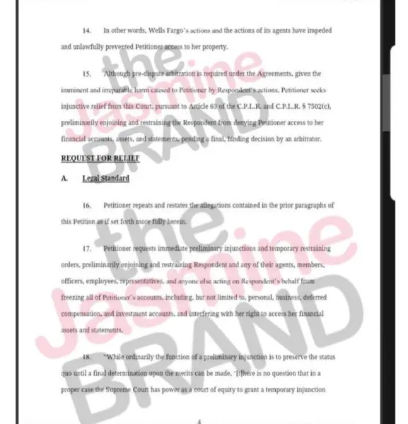 Meanwhile, the petition claims that Wells Fargo has justified its decision to keep her from her accounts by referencing it’s authority under various client agreements to