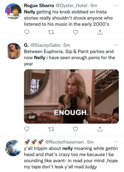 Original Story: In the words of Nelly, things are definitely ‘getting hot in here’! The 47-year-old rapper has the internet buzzing after he allegedly posted and deleted a video of him receiving fellatio from a woman. While we don’t see Nelly’s face in the video, fans are left to assume that it is him, especially since the video was uploaded on his Instagram story. The explicit content was allegedly uploaded by mistake for his 3 million followers to witness. While the post was quickly deleted, it appears enough fans were able to get a glimpse of the minute long video, and it quickly became viral.