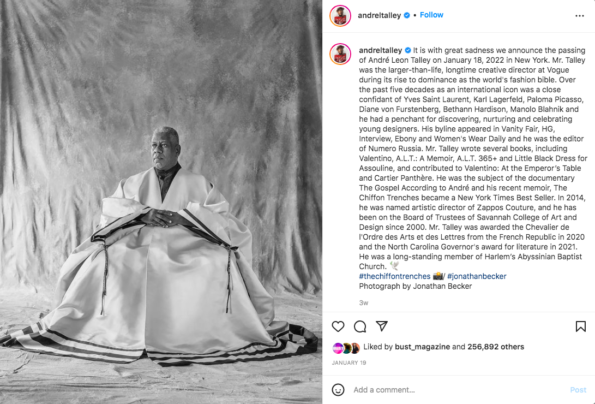 As previously reported, fashion icon André Leon Talley, unfortunately, died last month at the age of 73. The heartbreaking news was confirmed via his social media accounts.