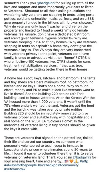 “Thank you @badgalriri for pulling up with all the love and support and most importantly your ears to listen to Veterans.”
