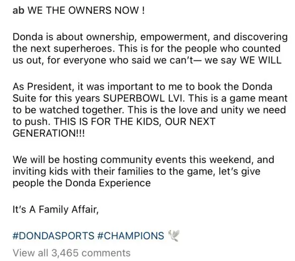 “As President, it was important to me to book the Donda Suite for this years SUPERBOWL LVI. This is a game meant to be watched together. This is the love and unity we need to push. THIS IS FOR THE KIDS, OUR NEXT GENERATION!!!”