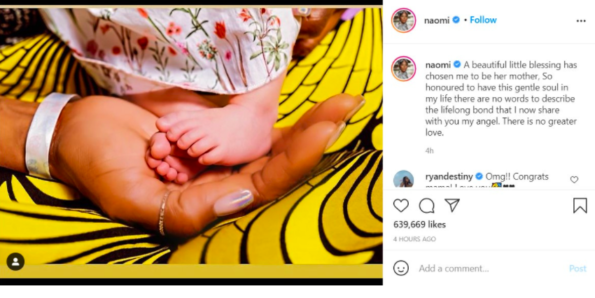 Naomi continued and shared that she’s keeping the full details surrounding her daughter’s birth and name private for her upcoming book, which she has yet to start working on. She added that prior to her IG announcement, not many people were aware she had a baby on the way. She said,