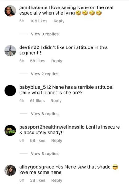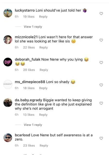 Some fans felt Loni Love was being shady towards Nene Leakes and was trying to call her out, while others felt as though Nene is indeed arrogant and was lying during the segment. See reactions below: