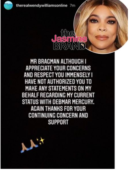 According to the source, Bragman was brought on by the show’s production company, Debmar Mercury — not by Wendy Williams. However, Debmar Mercury has denied this claim. Reportedly, Bragman was hired in September, just two days after Wendy was transported to a New York City hospital for a psychiatric evaluation.