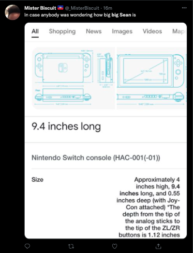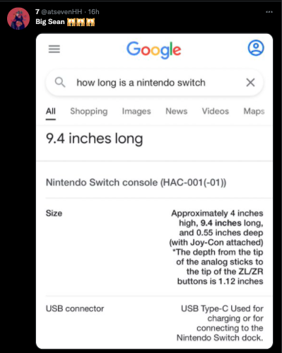 Big Sean possibly got exposed doing the ruler test with a Nintendo Switch, which is apparently 9.4 inches long.