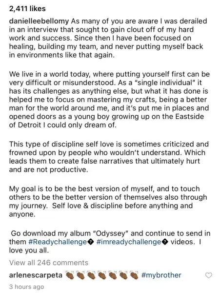 Daniel Bellomy took to Instagram Tuesday (Mar.15) to address the now viral interview. He shared a childhood picture of himself and wrote a lengthy caption sharing his thoughts and emotions.