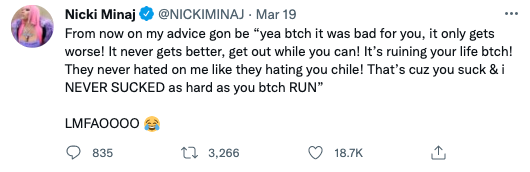 Since, Nicki has responded to critics via multiple tweets, jokingly telling followers next time she’ll say: