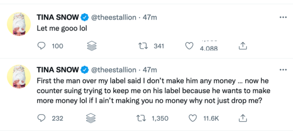 “First the man over my label said I don’t make him any money … now he counter suing trying to keep me on his label because he wants to make more money lol if I ain’t making you no money why not just drop me?”