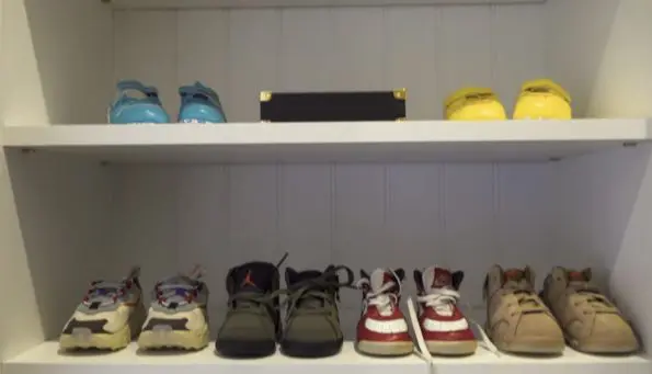 Kylie and Travis welcomed their baby boy February 2, 2022. Footage gave a sneak peak of the newborn’s beautiful and unique nursery, featuring a collection of classic children’s books, sneakers and a $9,000 Louis Vuitton stuffed bear.