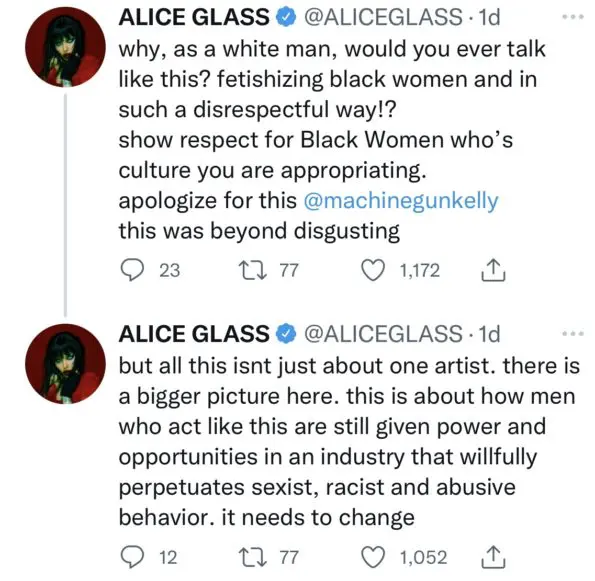 ”Why as a white man, would you ever talk like this? fetishizing black women and in such a disrespectful way!? show respect for Black Women who’s culture you are appropriating…Apologize for this @machinegunkelly this was beyond disgusting.”