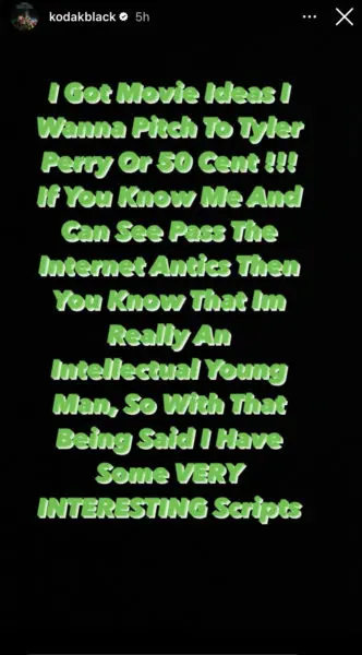 Kodak took to his Instagram story on Tuesday (March 29) to let his fans and followers know he’s looking to branch into the film business. The rapper notes that outside of the internet and media drama, he’s actually pretty intellectual. Kodak writes,