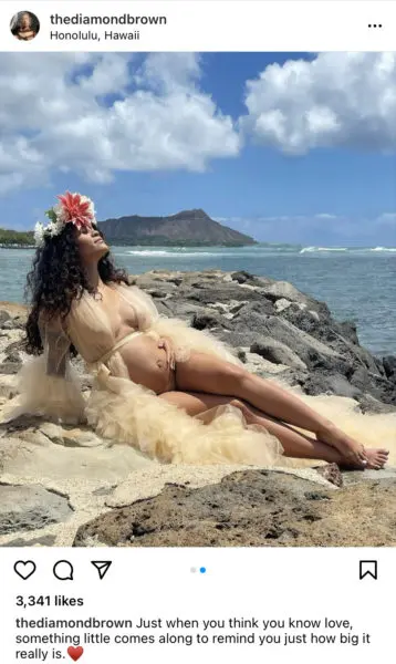 In September 2021, baby rumors started circulating once fans suspected Diamond was carrying Chris’s baby following her pregnancy reveal from a beach photo shoot posted to her Instagram. Diamond was suddenly pregnant after being spotted with Chris on multiple occasions. After announcing her pregnancy, Diamond allegedly would play the No Guidance singer’s music in the background of her IG stories, hinting him as being the father. Although the alleged parents have been making headlines since December 2021, neither Diamond nor Chris confirmed the paternity of the child.