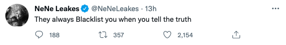 According to Black America Web, NeNe believes her turbulent relationship with Bravo and Andy Cohen has left her blacklisted. The reality star even inserted “BLACKLISTED” as part of her Instagram and Twitter bio.