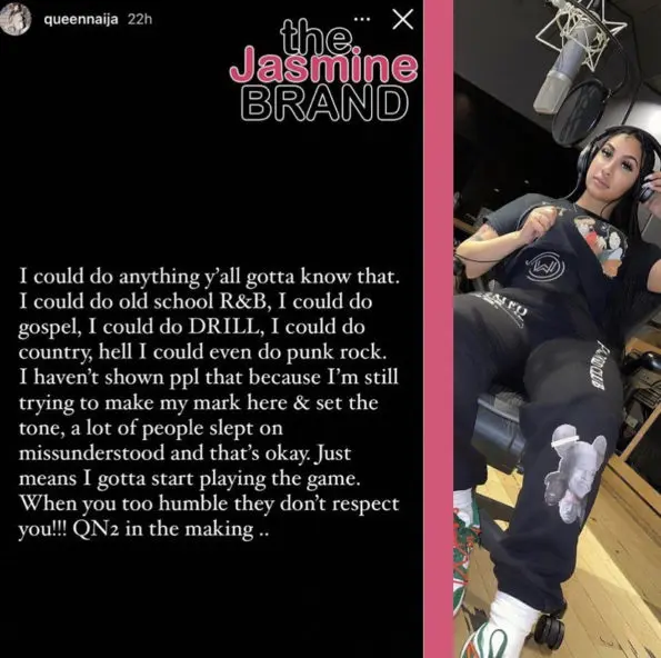 Queen Naija, 26, took to Instagram on Sunday (April 10) to let fans and followers know that her music catalog is just getting started. Queen Naija shared in a post via her IG stories that she’s versatile when it comes to music, but she’s still trying to make her mark in the music industry. Queen wrote,