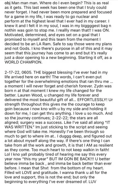 “This is as real as it gets,” wrote Beckham. “This last week has been one that I truly could never forget… 2-17-22, 0605. THE biggest blessing I’ve ever had in my life arrived here on earth! The words, I can’t even put together for the overwhelming emotions that ran thru me … a moment I will never forget and cherish forever. Zydn was born n at that moment I knew my life changed for the better.”