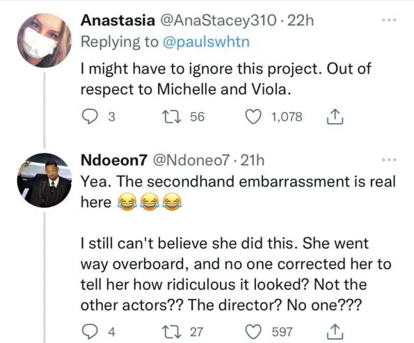“They set Viola Davis up by allowing her [to] keep her mouth that way throughout the filming. It’s so cringey and distracting.”