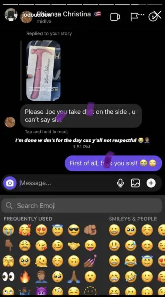 “I’m done w dm’s for the day cuz y’all not respectful.”