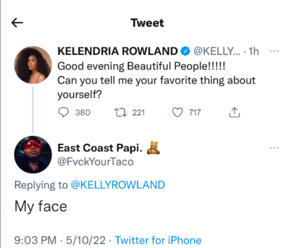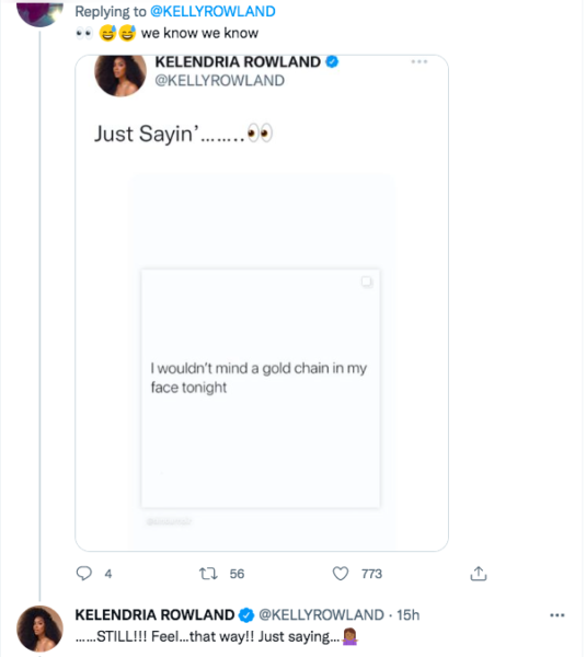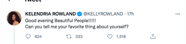 Last night (May 10) famed entertainer Kelly Rowland, 41, took to her Twitter to engage with her 6.9 million followers. While chatting with her fans online she asked,