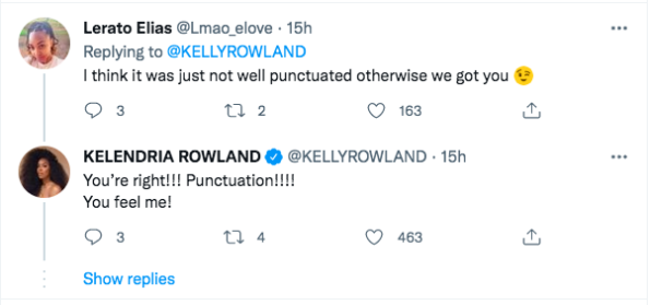 When a Twitter user reminded Kelly Rowland that she’s previously tweeted out sexual things before, she further explained that she meant her previous comments but her most recent remarks were seemingly a grammar mistake.