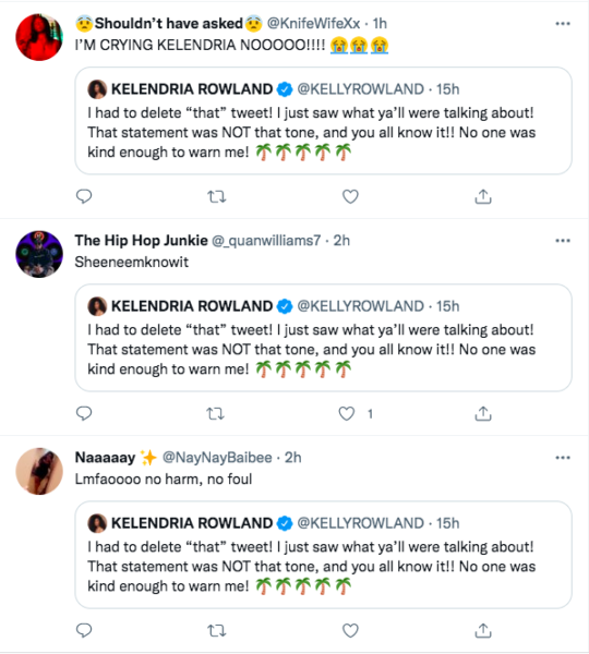 “I had to delete “that” tweet! I just saw what ya’ll were talking about! That statement was NOT that tone, and you all know it!! No one was kind enough to warn me!”