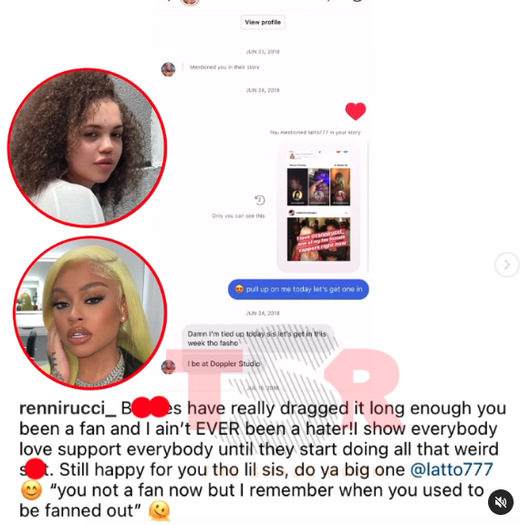 In a now deleted post, Renni seemingly responded to Latto’s recent post with previous conversations they’ve had. In the messages, the two musicians are seen praising one another and discussing a collaboration. Renni captioned the post: