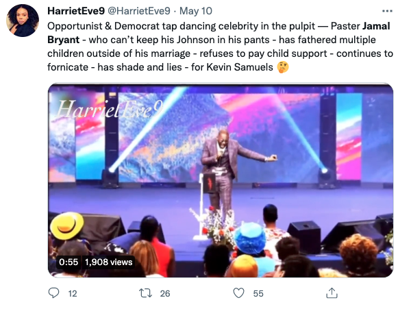 Paster Jamal Bryant – who has fathered multiple children outside of his marriage but has smoke and strong words for a dead Kevin Samuels. He's seen in this video pandering to a bunch of Black women in church. Religion has always controlled Black people pic.twitter.com/rUTQjbAr0f