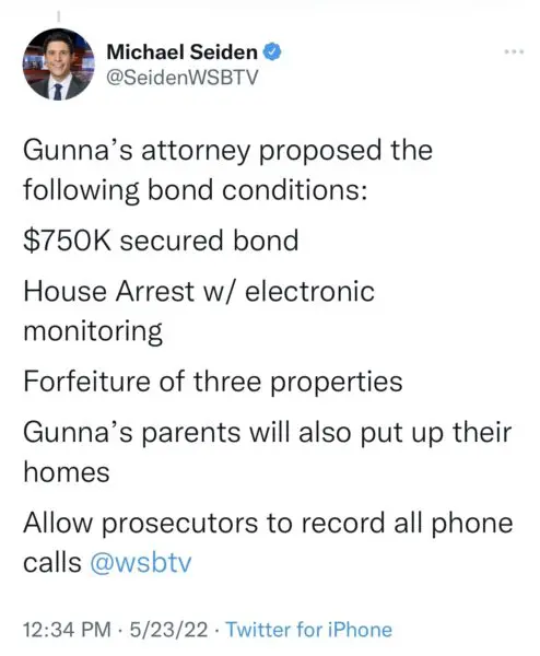Seiden also noted that before the judge made his decision against the bond, Gunna’s attorney’s proposed the following bond conditions: