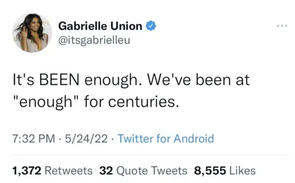 Actress Gabrielle Union tweeted: