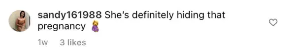 The pair have yet to confirm the rumored pregnancy news, however, fans are speculating that she’s trying to hide the pregnancy with comments under her latest Instagram posts. See reactions below: