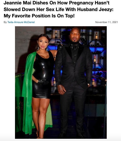 While standard recommendations is that new mothers wait at least six weeks to heal before engaging in sexual activity, Jeannie says her and Jeezy couldn’t. Following The Real co-host Adrienne Bailon questioning her about her personal experience, Jeannie responded: