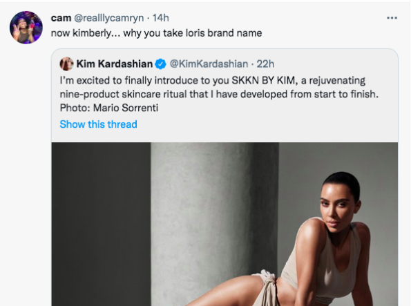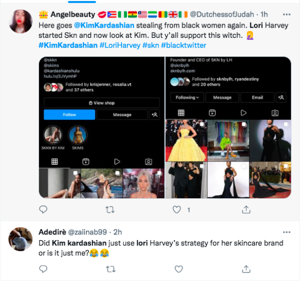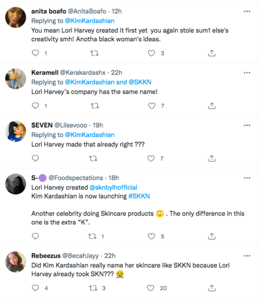 Following Kim’s announcement about her newest venture, it didn’t take long for people to accuse the business mogul of copying Lori Harvey’s company name. One Twitter user said,