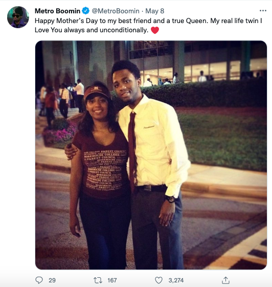 Metro Boomin previously opened up about the close relationship he shares with his mother, often calling her “twin” and his biggest supporter. Earlier last month, the Atlanta native penned a simple and sweet tribute to his “best friend” for Mother’s Day, writing: