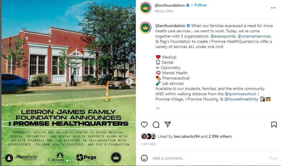 The LeBron James Family Foundation announced on Instagram that it is partnering with local healthcare institutions to develop a medical center in Akron. The Foundation shared a statement on the exciting news that reads,